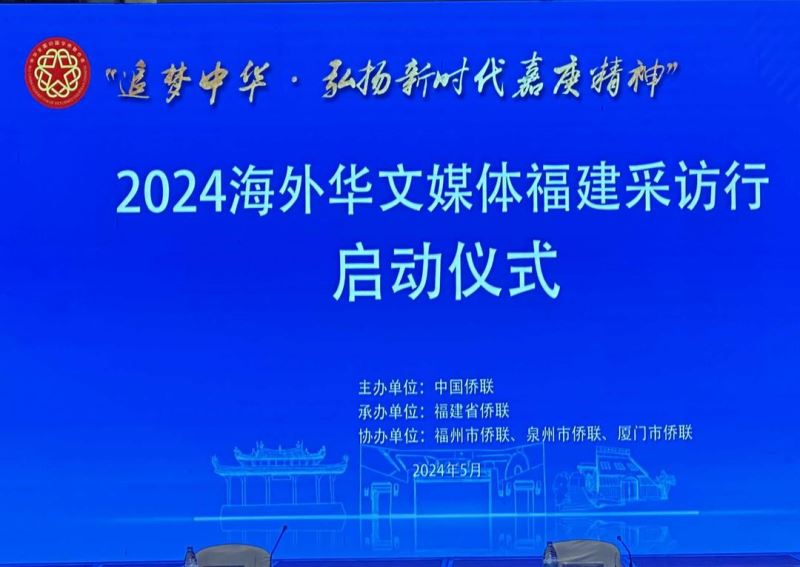 下午16:30举行了“追梦中华·弘扬新时代嘉庚精神”2024海外华文媒体采访行启动仪式,来自马来西亚、美国、法国、埃及、委内瑞拉、澳大利亚、尼日利亚、阿根廷、俄罗斯、德国、罗马尼亚、意大利、加拿大、马达加斯加、中国香港、中国澳门等地19个国家和地区的二十四家海外华文媒体,以及人民日报、人民日报海外网、新华社、央视总台、中国日报、人民政协报等6家中国主流媒体,在采访团团长、中国侨联信息传播部左志强部长的带领下走进福州参加由中国侨联主办、福建省侨联承办的“追梦中华·弘扬新时代嘉庚精神”2024海外华文媒体福建采访行启动仪式, 中国侨联信息传播部部长左志强, 福建省侨联党组书记、主席陈式海, 福建省侨联党组成员、副主席刘思一, 福州市侨联党组书记、主席林高星出席了启动仪式。 中国侨联信息传播部左志强部长做了讲话,福建省侨联党组书记、主席陈式海致辞,海外华文媒体代表、马来西亚海内外传媒集团主席、海内外杂志社社长续炳义代表媒体发言,福建省侨联党组成员、副主席刘思一 主持了 “追梦中华·弘扬新时代嘉庚精神”2024海外华文媒体福建采访行启动仪式。陈式海主席在左志强部长讲话后又做了补充发言,重点介绍了陈嘉庚先生在福建在厦门在集美的动人事迹。