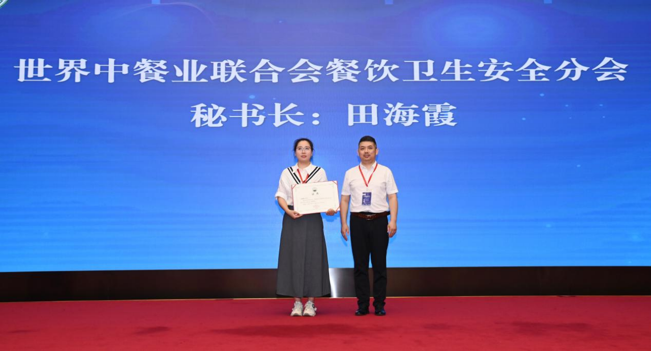 田海霞秘书长为世界中餐业联合会餐饮卫生安全分会副秘书长颁发聘任证书