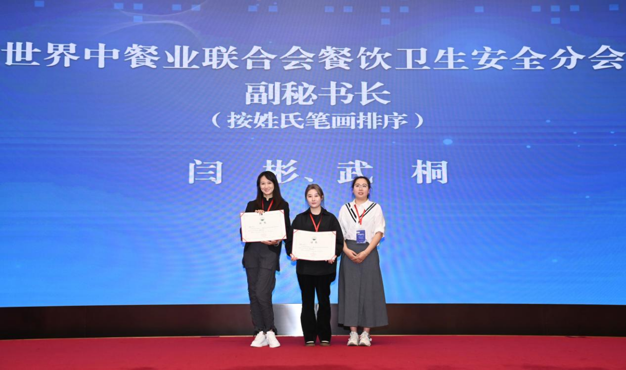 邢颖会长、吕先铭主席为世界中餐业联合会餐饮卫生安全分会专家颁发聘任证书