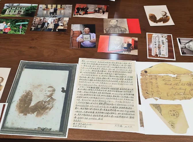 今年年初,黄畅泉与妻子第一次参观侨博馆,并把挂在哥伦比亚大学的曾祖父照片修复照以及各种相关资料复印件赠予侨博馆。在参观过程中,对于侨博馆展示出的从江门走出去的华侨华人顽强拼搏、艰苦奋斗的历程十分触动。在参观其曾祖父展区时,他在马万昌画像下,指着“丁龙”二字,对侨博馆相关负责人建议:“展区办得很好,但我曾祖父的名字应该是‘进隆’,而不是‘丁龙’。‘丁龙’虽然读音相近,但不是我曾祖父的名字。”