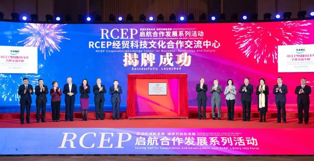 2022年1月1日下午,在RCEP生效实施的首日,“展望区域新未来,谋求开放新发展——RCEP启航合作发展系列活动”在江门隆重举行,其中,华商对接RCEP经贸合作江门峰会由江门市侨联承办。广东省侨联党组书记颜珂(左五)出席活动