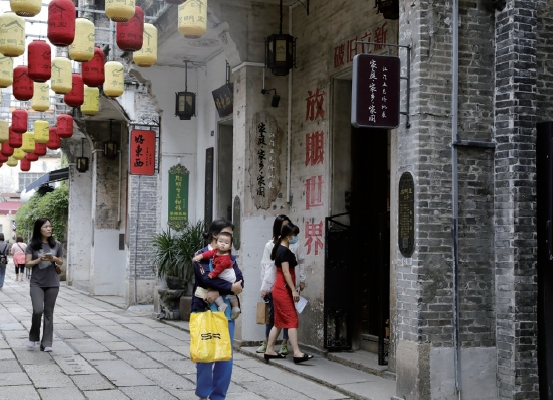 踏着凹凸不平的条石路,往西北方向的京果街走去,一片低矮破落的小民房映入眼帘,这就是墟顶街,江门的“城市原点”。