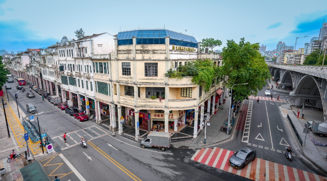 长期以来,江门市坚持对历史建筑修旧如旧和活化利用,历经百年风雨洗礼,长堤历史文化街区依然呈现出蓬勃发展、欣欣向荣之势,完整保存着清代至民国时期、中西合璧的骑楼建筑群,以及百年华侨古村落。这些古建筑群不仅凝固了历史和文脉,也留住了烟火与人情。近年来,长堤历史文化街区还涌现了咖啡、茶饮、轻餐饮等新业态,让这片百年商业老区,既保留着昔日的旧风情,也充满了当今的新时尚,似一幅连接历史和现实的画卷。