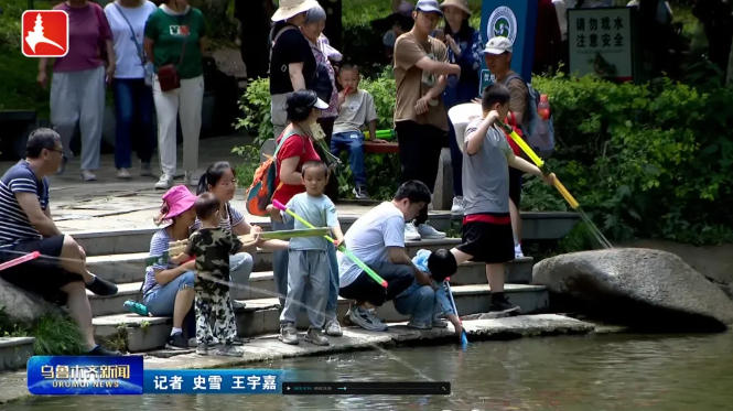 在水磨沟公园,游客们嬉水喂鱼、品茶、簪花,沉浸式享受江南美景。假日前三天,公园每天接待游客上万人次,是平时的两到三倍。