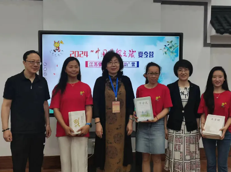 在赠书环节,省侨联肖燕,镇江市归国华侨联合会副主席、秘书长黄蓓和江苏大学侨联主席邵学军将《三字经》《千字文》和《唐诗里的农耕文化》赠与此次参营的领队老师和营员,希望他们通过这些典籍和著作领略汉字文化的魅力,传承和传播中华优秀文化。