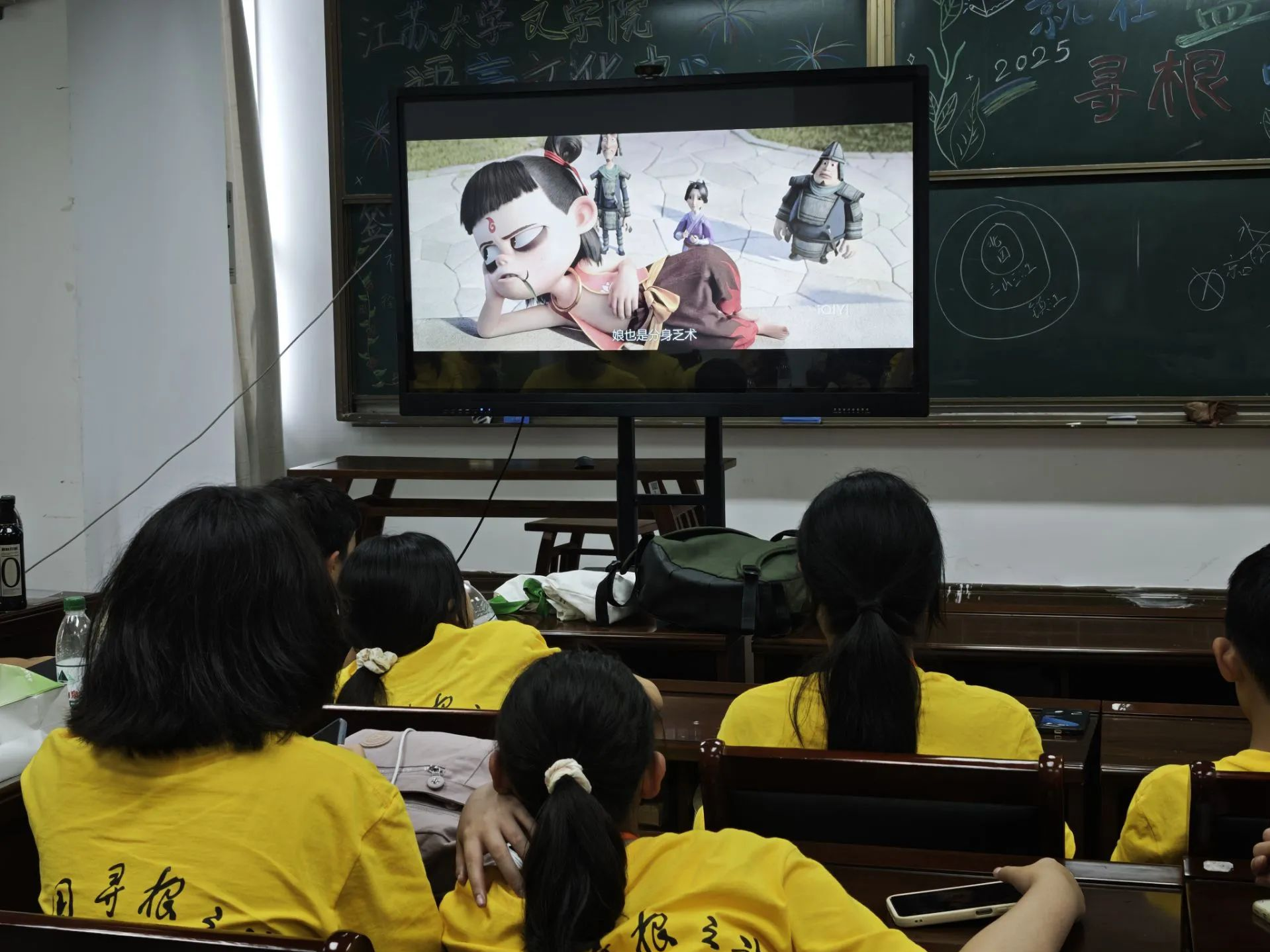 下午,36名华裔青少年齐聚江苏大学三江楼901B,共同观看国产动画电影《哪吒之魔童降世》,在光影艺术中感悟中华文化的当代表达。