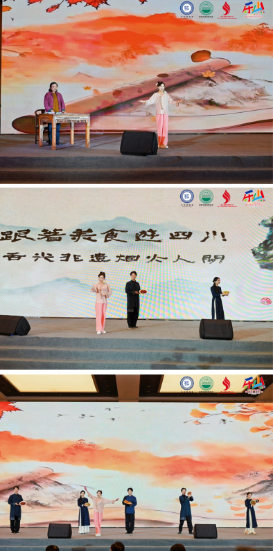 11月2日,在由世界中餐业联合会主办的第八届世界川菜大会的舞台上,“跟着美食游四川”情景剧以独特的艺术形式惊艳亮相。该剧以四川省省级非遗峨眉指画代表性传承人林栩的指尖为笔,用丹青勾勒出五幅秋日天府画卷。主持人与演员动情演绎,串联起四川东南西北中五大片区的非遗美食与地域文化。在游历锦绣天府之后,由四川省曲艺研究院倾情呈现的四川省省级非物质文化遗产——车灯《好吃嘴》带着悠扬的唱腔、生动的舞蹈,将四川人对美食的热爱、对生活的热情演绎得淋漓尽致,赢得了现场观众的热烈掌声。