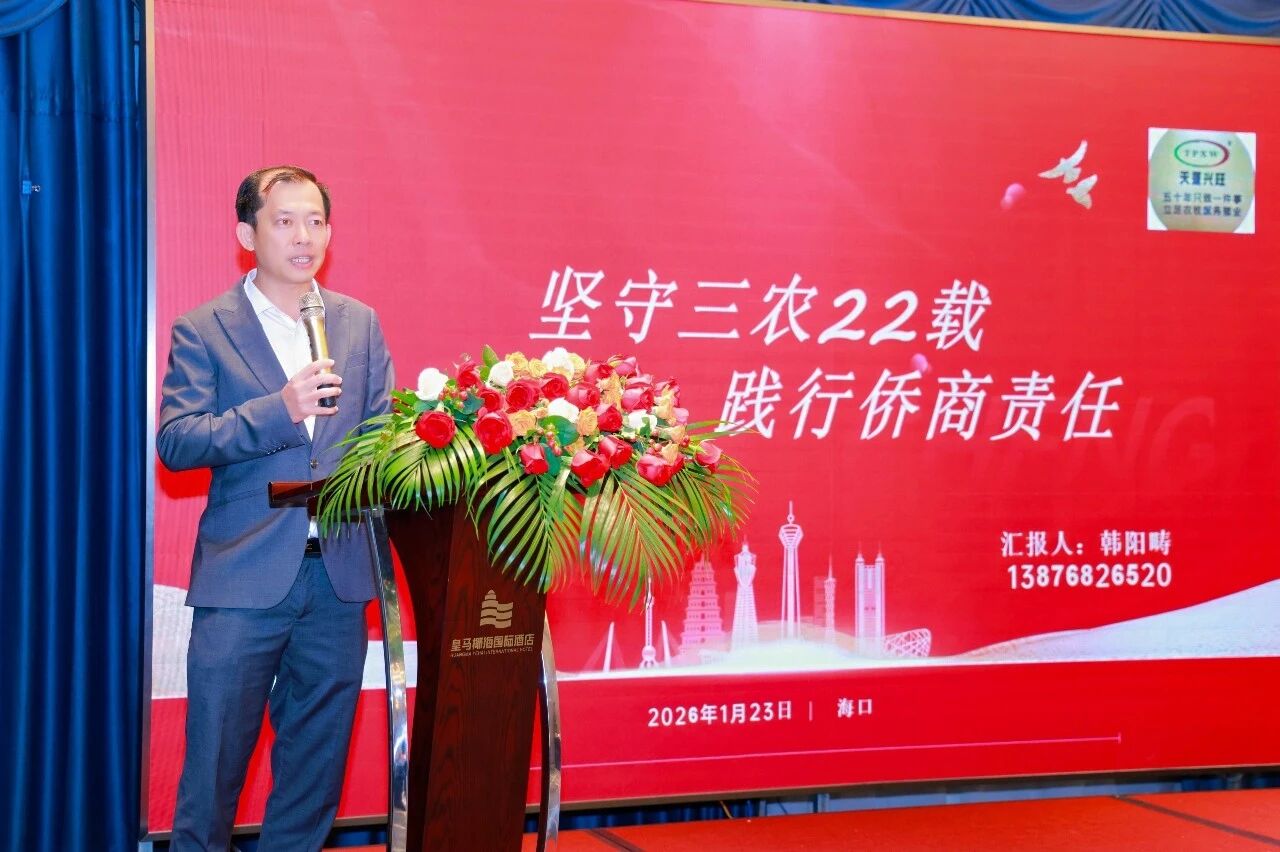 洪江游在致辞中表示,海南自贸港建设进入封关运作关键期,为侨商提供了宝贵发展机遇。他表示,2026年将继续深化“海南侨商组织联络服务站”功能,推动市县侨商会建设,织密组织网络,助力侨商共享红利、把握发展机遇。
