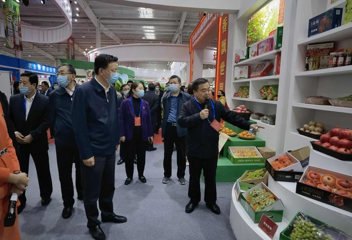开幕式前,与会领导和嘉宾共同到第六届山西(运城)国际果品交易博览会主展馆巡馆。