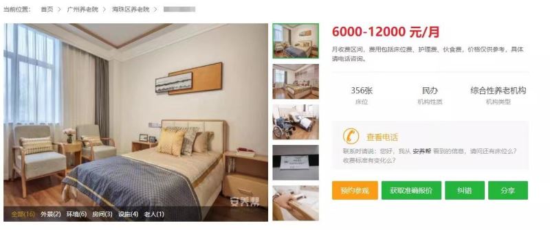 那么,现在广州最贵的养老机构收费多少呢?无论是查询网上的公开信息,还是阿沐自己私下了解到的,广州最高端的养老机构收费一般不会超过2万。当然,2万也不便宜了,但是比起“二舅公”住的养老院,差了整整4倍。