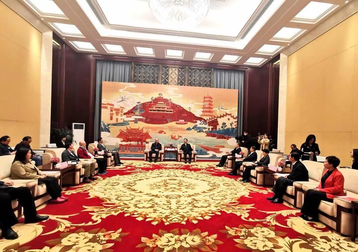22日下午蚌埠市市委书记黄晓武,市委常委、组织部部长、统战部部长马天奇, 市人大常委会党组副书记、市委秘书长高一尚, 市委宣传部常务副部长孙惠云, 市委统战部常务副部长高健清, 市侨联主席宋静等领导亲切会见了以中国侨联信息传播部左志强部长,安徽省侨联党组书记、主席李世蕴为首的 “追梦中华·科技兴皖”2021 海外华文媒体安徽采访团一行。