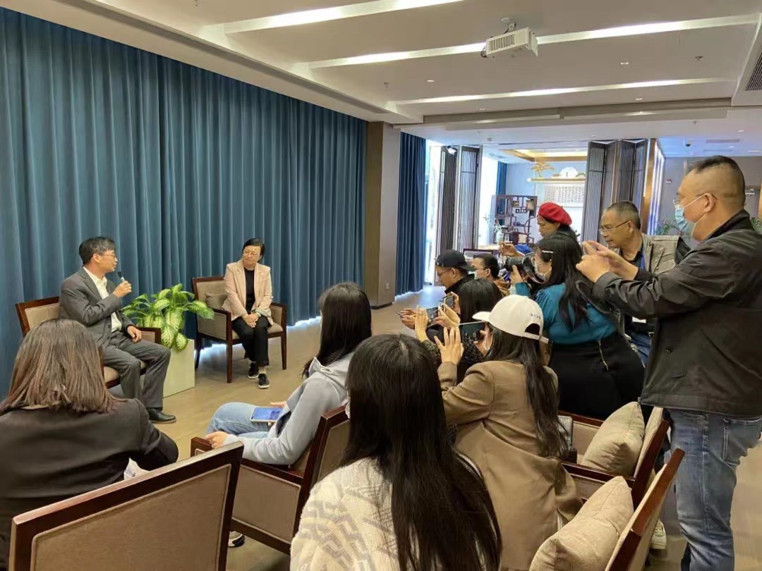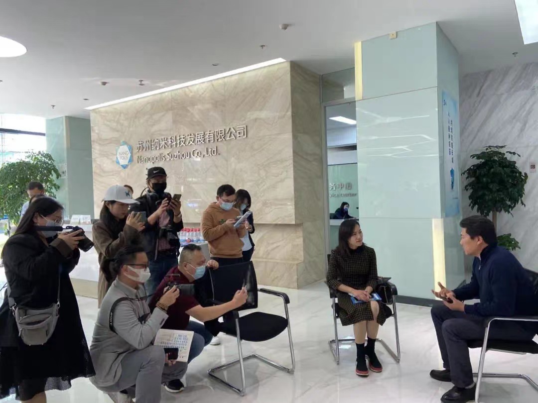 在苏州工业园区,采访团参观了解了苏州经济科技发展情况。在访谈环节上,苏州纳微科技股份有限公司董事长江必旺博士、苏州博瑞生物医药(苏州)股份有限公司董事长袁建栋、初未乙国际创始人顾乙等3位苏州侨界代表接受采访团采访,分享了他们的创业故事。