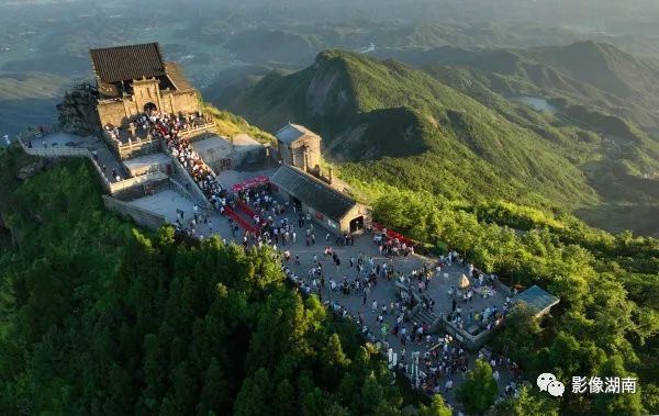祝融殿位于祝融峰顶,夏有青山环绕,冬有银装素裹。