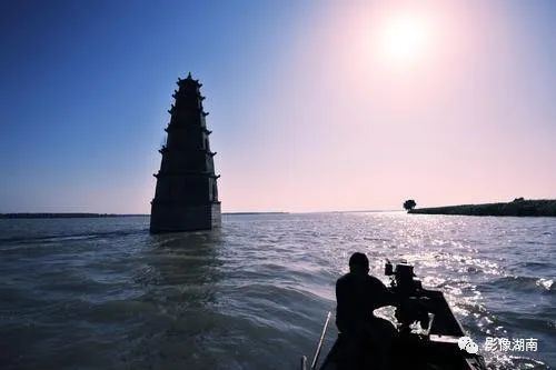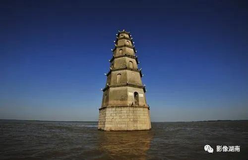 背靠湘江与资水合流的堤岸,俯瞰南洞庭,远眺望东洞庭,是一座完完全全长在水中的宝塔。