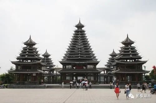 鼓楼巍然挺立,气概雄伟。飞阁垂檐层层而上如同凌云宝塔,怀化芷江侗族自治县万和鼓楼,是目前国内最大的侗族风情标志性建筑鼓楼群。