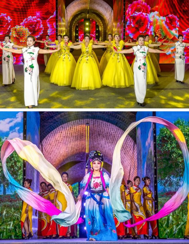 还有闻喜县文化馆选送的《龙乡之韵》、河津市人民文化馆模特表演的旗袍秀、运城市文化馆群星模特队表演的《锦绣河东》,巧妙地将闻喜煮饼、花馍、布艺、茶香书香及剪纸等运城特产、非物质文化遗产进行了展示……精彩不断的表演赢得现场观众的阵阵掌声。