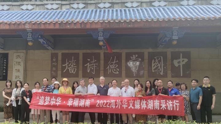 (国际华文媒体联盟记者、马来西亚海内外传媒集团记者、海内外杂志社记者联合报道)7月20日,由中国侨联信息传播部、湖南省政府新闻办指导,湖南省侨联主办,益阳市侨联、常德市侨联、张家界市侨联、湘西州侨联承办的“追梦中华·幸福湖南”2022海外华文媒体湖南采访行活动,来自马来西亚、加拿大、德国、澳门等国家和地区的海外华文媒体,以及光明日报、央视总台、人民网、人民政协报、中新社等中央涉侨媒体,湖南省相关媒体在中国侨联信息传播部左志强部长和湖南省侨联党组成员、副主席李祖元等领导的带领下走进常德市诗墙参访,