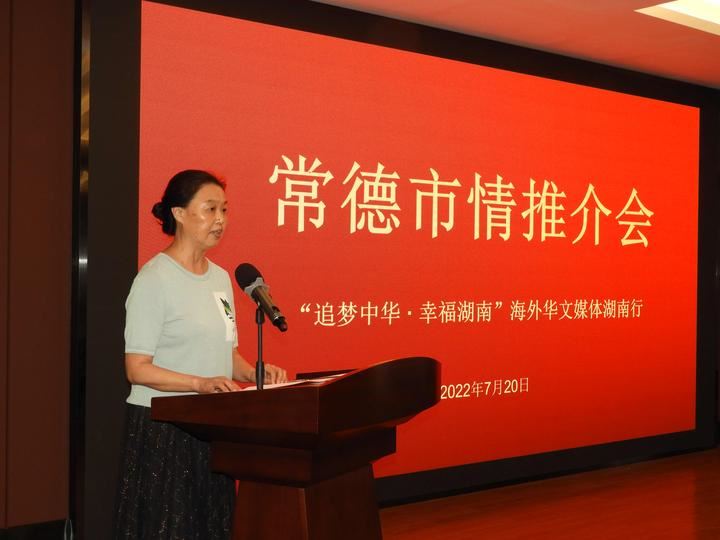 (国际华文媒体联盟记者、马来西亚海内外传媒集团记者、海内外杂志社记者联合报道)7月20日,由中国侨联信息传播部、湖南省政府新闻办指导,湖南省侨联主办,益阳市侨联、常德市侨联、张家界市侨联、湘西州侨联承办的“追梦中华·幸福湖南”2022海外华文媒体湖南采访行活动,来自马来西亚、加拿大、德国、澳门等国家和地区的海外华文媒体,以及光明日报、央视总台、人民网、人民政协报、中新社等中央涉侨媒体,湖南省相关媒体在中国侨联信息传播部左志强部长和湖南省侨联党组成员、副主席李祖元等领导的带领下走进常德市参访,常德市委市政府举行了欢迎推介会。