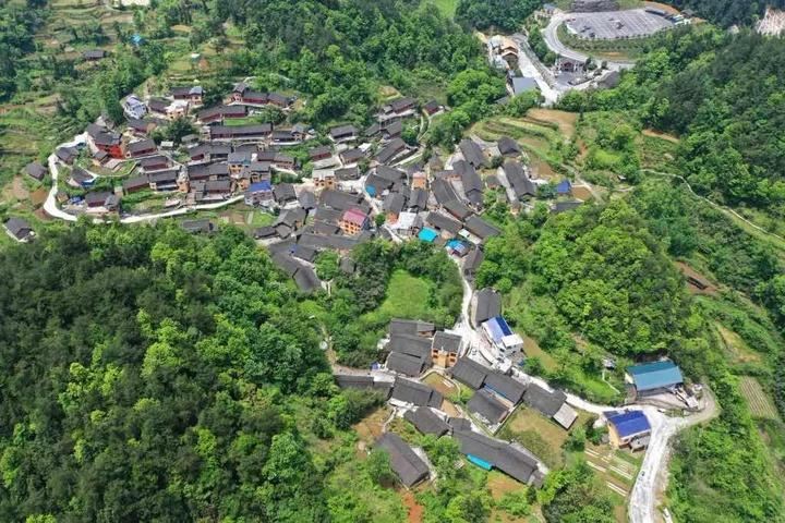 当戎寨民居均依山就势而建,规划有序,布局合理。街巷空间依地形顺势布置,沿地势而上,青石板街巷、吊脚楼与植被共同形成和谐且具有传统意味的街巷空间。