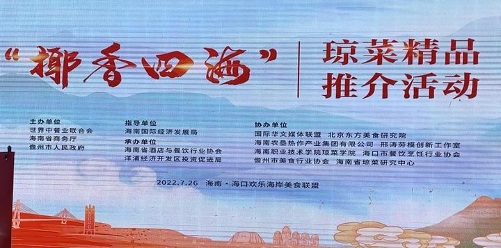大海之南,山海之间;盛夏之际,消博如约。为围绕海南国际旅游消费中心定位,有效扩大琼菜宣传面,树立琼菜品牌良好形象,提升琼菜品牌影响力,促进琼菜品牌与国内外的交流与经贸合作,推动海南餐饮业高质量发展,7月26日,由世界中餐业联合会、海南省商务厅、儋州市人民政府主办,海南国际经济发展局指导,海南省酒店与餐饮行业协会承办的第二届消博会“椰香四海”琼菜精品推介活动在海口举办,活动邀请儋州市作为主宾城市。