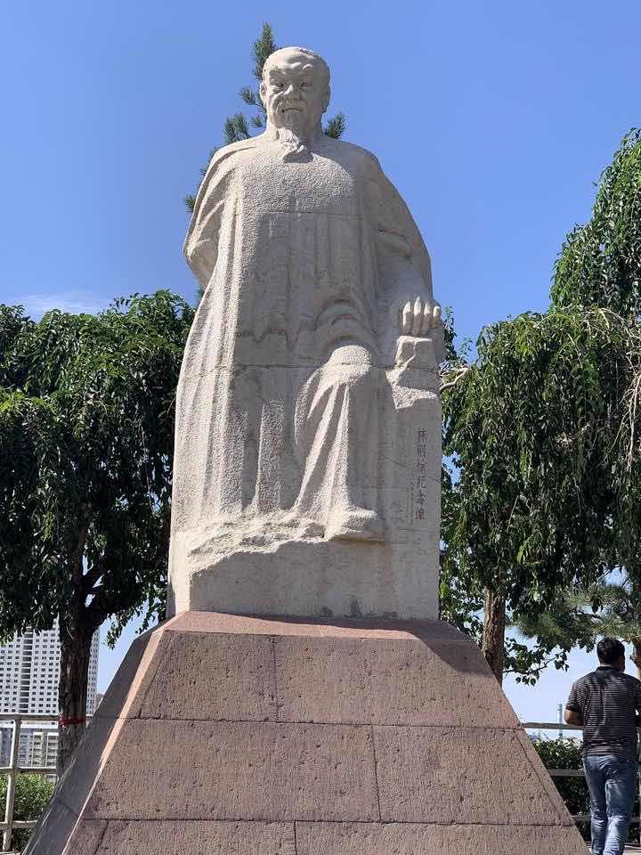 来到红山公园,这 是一座集旅游观光、古典特色、人文内涵、体育健身为一体的综合性自然山体公园,是国家4A级旅游景区,也是乌鲁木齐市新十景之一, 红山公园,因地处红山而得名,红山山体由紫色砂砾岩构成,呈赭红色,故名“红山”。据地质研究,红山是在距今约八千万年前的喜马拉雅山造山运动时期,同天山一同崛起的。山上有珍奇的化石资源,曾发现了距今2.7亿年前的古鳕鱼化石和酷似人类鞋印的化石。 远眺楼西面,有一座林则徐纪念像。这里成了记者们的打卡地,大家不约而同的想起了虎门硝烟,悲与敬由心而生,悲的是清政府的软弱,敬的是民族英雄虽然受尽折磨和委屈,仍然能够不畏强权,感慨万千的在这里生活。 道光二十二年(1842),他被贬官后充军伊犁。道光二十五年(1845年)12月4日,他登上红山,感慨万千,吟红山诗一首:“任狂歌,醉卧红山嘴。风劲起酒鳞起。”为纪念他的伟绩,当地在红山宝塔侧塑立了他的雕像,安放了禁毒铜鼎,红山成为新疆第一个禁毒教育基地。此时 记者突发奇想,如果在这里再建一个纪念馆和雕塑馆,把林则徐的虎门销烟、充军路上的故事,以及登顶红山的状况和吟诗瞬间的心理路程,用文字、图片、雕塑、灯光组合在一起,既是一处爱国主义教育基地,又是一组精准民族融合发展的真实写照。