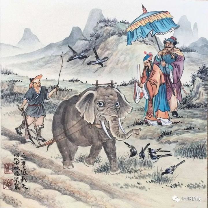 后人有诗赞曰:“队队春耕象,纷纷耘草禽。嗣尧登宝位,孝感动天心。”