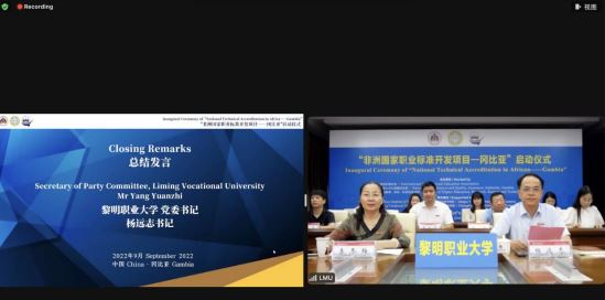 9月29日,由世界教育组织联合会与冈比亚教育部共同主办的“非洲国家职业标准开发项目—冈比亚”启动仪式,通过线上云参会的方式举办,马来西亚国际文化交流中心中国办事处、世界教育组织联合会、冈比亚教育部分别设置线下会场,同时,十余个中方院校设置线下分会场,本次启动仪式圆满成功。标志着中冈教育合作迈向新征程。