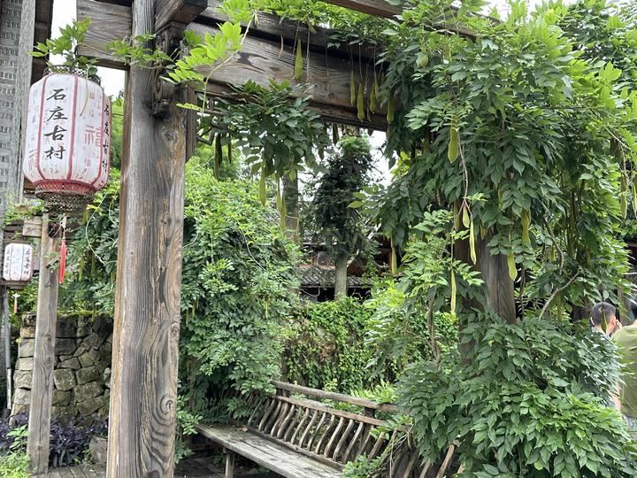 位于百丈漈下石庄古村落中的开臣璞居民宿,是文成县第一批侨家乐民宿,于2019年11月开始营业。四周青山逶迤相伴,环境十分优美,民宿外观为古色古香的中式庭院,结合了中式加西式的跨界融合,庭院中看似无意随心的景色,都带有悠长的历史韵味。村里还有许多保存完整且古朴的建筑,高低错落的房屋掩映在绿树丛中,恰似一副副美丽的图画镶嵌在大山之中。