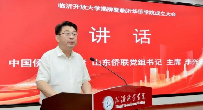 李兴钰代表山东省侨联,对临沂开放大学华侨学院的成立表示热烈祝贺。他指出,国家开放大学华侨学院由国家开放大学和中国侨联共同发起成立,学院依托国家开放大学的教学资源和平台优势,面向全球华人华侨、归侨侨眷和全球汉语学习者,推动“互联网+华文教育”,开展线上与线下相结合的学历、非学历教育培训和活动。临沂开放大学华侨学院作为山东第一家华侨学院,按照国家开放大学华侨学院总部的办学方针,认真学习借鉴成熟办学经验,不断提升办学专业化、国际化水平,加强国际合作和交流,办出特色、办出水平,讲好中国故事、山东故事、临沂故事,切实为广大侨胞侨眷和归国留学生做好服务工作,在推动临沂经济社会发展方面发挥越来越重要的作用。