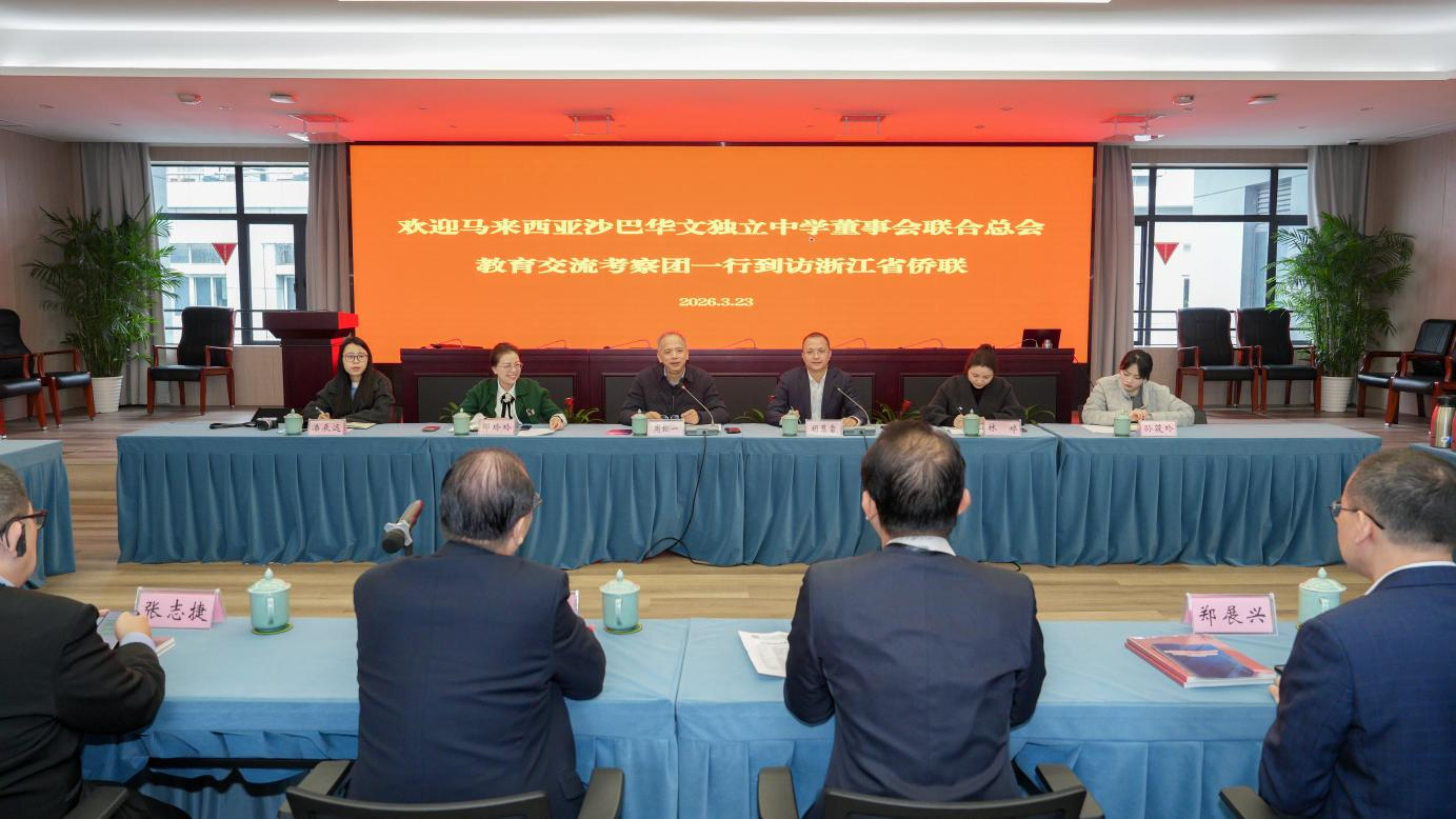 周松一代表省侨联热烈欢迎马来西亚沙巴华文教育交流考察团一行到访。他全面介绍了浙江省的发展概况、省侨联近年来的主要工作成效,以及助推海外华文教育、促进中外教育交流中的实践。他指出,长期以来,以沙巴华教组织及侨领为代表的广大马来西亚侨胞,不仅是当地社会发展的积极贡献者,更是华文教育的热心守护者和推动者。他表示,省侨联将持续关注沙巴独中所面临的挑战以及具体需求,与沙巴华文独立中学董事会联合总会及各独中建立更紧密的联系,助力解决学校关心的问题。他希望,各独中的校长和老师们继续发扬中华传统文化,深耕华文教育沃土。持续发挥融通中外的独特优势,为深化浙江与沙巴的友好情谊、共同推动华文教育事业繁荣发展、绘就“侨兴浙江”与“华教兴马”交相辉映的美好画卷贡献更多侨界智慧和力量。