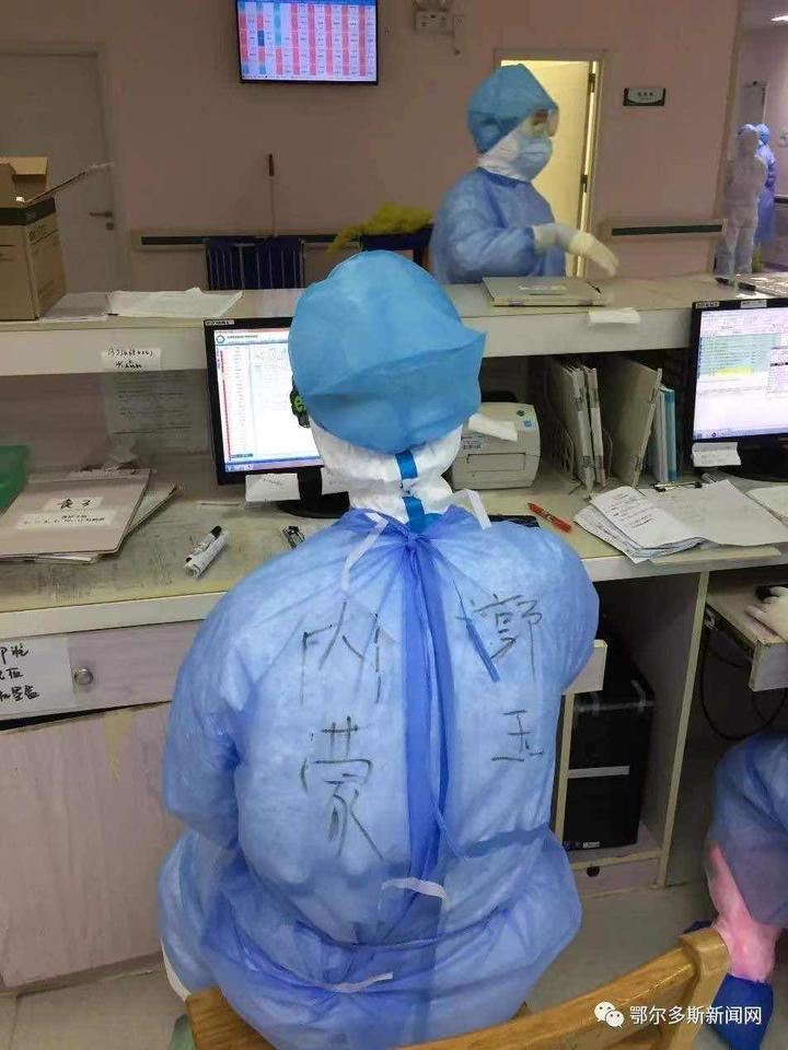 好多患者焦虑、不安,问我们:“大夫,我的检查结果怎么样,好些了吗?”我们说:“你的CT好多了,你会好起来的,相信我们,过段时间大家就会像原来一样逛街了。”因进入隔离病房后大家都穿着一样的防护服,而且好多来自不同地方,不好辨认,大家都在防护服上写着名字,有的写着省份。有一个患者看我们防护服上写的是内蒙古,满是愧疚与感激地说:“让你们来这里冒着生命危险为我们看病,真的对不起!太感谢你们了!”