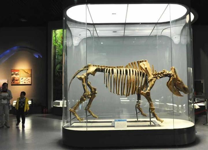 除了人类化石外,萨拉乌苏还发现了种类丰富的动物化石,包括34种哺乳动物和11种鸟类,统称“萨拉乌苏动物群”。展柜中的河套大角鹿、王氏水牛、披毛犀等动物化石,正是萨拉乌苏动物群的重要代表。“在古生物化石展厅有一件披毛犀化石骨架,完整程度达95%以上,堪称我馆的镇馆之宝之一。” 鄂尔多斯博物馆副馆长甄自明介绍。