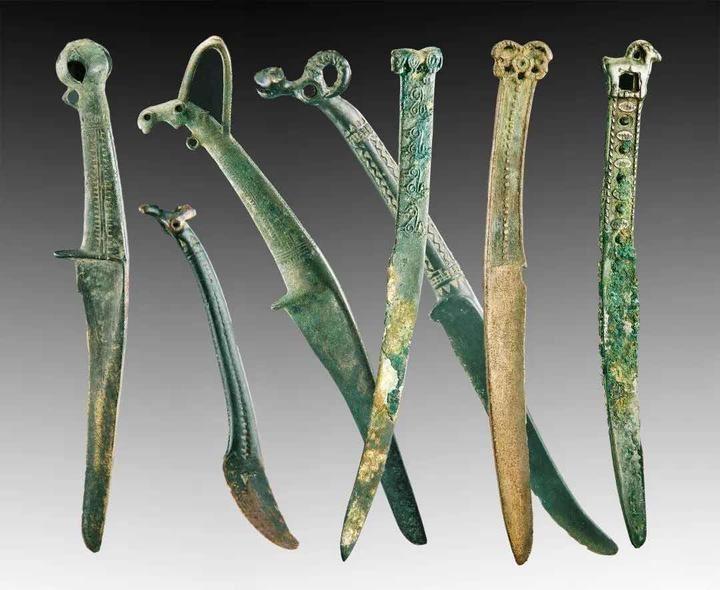 ↑ 铃首、动物纹柄首青铜刀