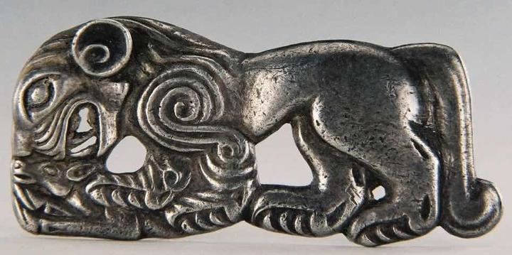 ↑ 虎食鹿纹银牌饰