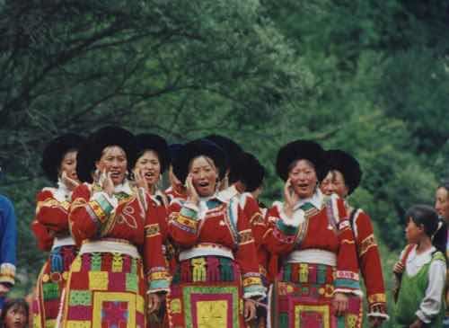 民歌大多是见景生情,即兴发挥,抒发出唱者不同的心境。主要分酒歌、山歌、情歌、时政歌、劳动歌、喜庆歌、丧祭歌等。其中,酒歌是专门在饮酒时唱,由老人引领,众人相和,内容多为颂扬英雄、先辈功绩和欢迎客人,礼仪性强。在松潘县小姓乡、镇坪乡、茂县赤不苏、较场等地至今还流行多声部民歌,演唱技巧独特。不仅有二声部、三声部、五声部、多声部,还有合声民歌的不同组合形式。