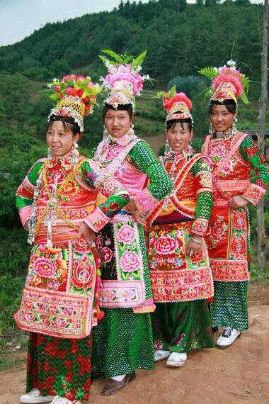 禄劝、寻甸等地妇女的盛装是古老的贯头衣,这种服饰前短后长,宽大无袖。