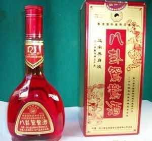 八卦鸳鸯酒:八卦鸳鸯酒是道家养生文化的“活文物”,始于隋唐,兴于宋,清乾隆后转入民间,在威远秘传。其酿酒秘术由平真教掌门单传,该酒酿制技艺主要包括:五行配方术(按照道家五行生克关系,将十六味中药配伍制成药丸)、地元炼丹术(用道家地元炼丹术,在丹炉中将药丸去除毒性,活化有效成分,炼制成“八卦阴阳丹”)、丹酒醇化术(将“八卦阴阳丹”置入优质基酒,恒温浸泡醇化,制成八卦鸳鸯酒)。