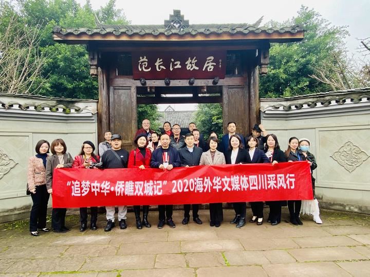 (国际华文媒体联盟记者、马来西亚海内外传媒集团记者、海内外杂志社记者、海内外资讯社记者联合报道)2020年11月6日,由四川省人民政府新闻办公室指导,中国侨联信息传播部支持,四川省侨联主办,成都、自贡、内江、南充市侨联共同承办的“追梦中华·侨瞧双城记”2020海外华文媒体四川采风行活动走进四川内江范长江故居参访。来自美国、意大利、瑞典、德国、西班牙、澳大利亚、新西兰、阿根廷、缅甸、马来西亚、吉尔吉斯斯坦等11个国家和地区的20位华文媒体记者以及1位中央媒体记者在省市侨联的组织下来到新闻界先驱范长江故居参访,共同缅怀这位新闻界革命先驱的可歌可泣的事迹。