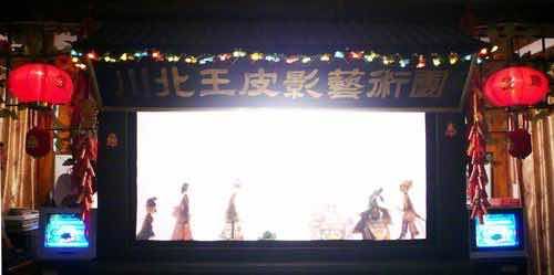 四川皮影流传于川北一带,多借用川剧声腔,同时杂以川北民歌小调,也有自编的,都极大众化。伴奏乐器有鼓、锣、钹、胡琴、唢呐等。
